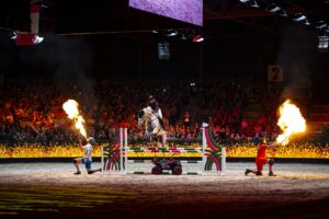 Veel afwisseling tijdens de show. Er werd zelfs gestunt en wel door Benthe die al eerder in actie kwam samen met IJsbrand. Ook Britt werd erbij geroepen die op een mini quad de ring in kwam. De quad werd voor een hindernis geparkeerd waar Benthe vervolgens overheen sprong! Echter het werd nog spannender! Benthe heeft haar eigen stuntteam dat vervolgens de ring in kwam. De gekste capriolen werden uitgevoerd, zelfs met vuur. Natuurlijk alles met paarden.