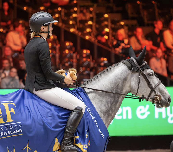 De hindernissen werden steeds iets hoger op de eerste internationale springdag van Indoor Friesland 2025. De Univé Prix, een driesterrenrubriek op tijd over een hoogte van 1.45m, leverde een Nederlandse, Zweedse, Belgische top drie op. Na twee nationale overwinningen gisteren in de Horses2fly finales, voegde ze daar zojuist een internationale overwinning aan toe. Publiekslieveling Marriët Smit – Hoekstra en de achtjarige merrie Wadro’s Maggie May (v. Zirocco Blue) waren in de tijd van 60.40 seconden de allersnelsten.