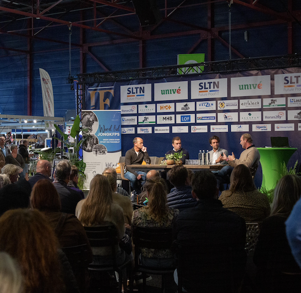 Zonder fokkerij geen sport. Daarom kwamen aan het einde van de zaterdagmiddag van het dressuurweekend boegbeelden uit de Nederlandse fokkerij samen in het Fokkerscafé op het Indoor Friesland Mediaplein – Powered by Horse & Country. In samenwerking met de jonge generaties van het Koninklijk Friese Paardenstamboek (Jong KFPS) en het Koninklijk Warmbloed Paardenstamboek Nederland (Jong KWPN) had Indoor Friesland een interessant, educatief en informatief programma samengesteld waar jong en oud veel konden leren van ervaren en bekende mensen uit de Nederlandse fokkerij. Wanneer je iets bedenkt en organiseert, is het altijd afwachten of het aanslaat, maar de missie lijkt geslaagd. Alle stoelen waren vol, er moesten er zelfs bijgehaald worden en nog stonden er diverse geïnteresseerden rond het sfeervolle plein.