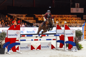 Eindelijk is het zover. Na vele voorrondes, heel veel starts en heel veel rekenen worden vandaag de Horses2fly finales gereden. Natuurlijk in het schitterende WTC Expo in Leeuwarden. De ruiters en amazones in de klasse 1m10 mochten het spits afbijten en daarmee tevens het springweekend van Indoor Friesland 2025 openen. Veertig combinaties kwamen aan de start in deze klasse en maar liefst de helft mocht terug komen voor de barrage. De winnares werd net als vorig jaar in deze rubriek de pas vijftienjarige Amber Kiewiet. In het zadel van de tienjarige merrie Glow of Fire van ’t Vhij (v. Latour VDM), kwam ze over de finish in 30.99 seconden.