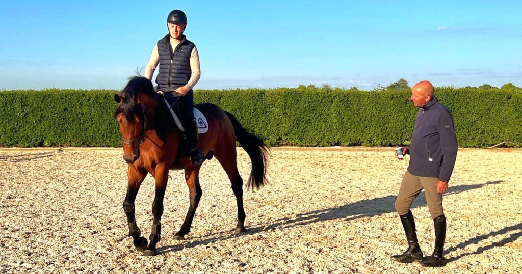 Uitgelicht afbeelding: Jayden krijgt les van Marcel de Boer op de goedgekeurde hengst Zinelord van de VDL Stud.